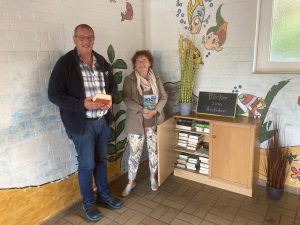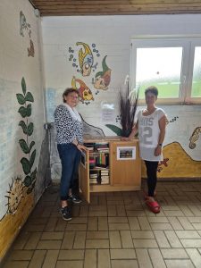 Dieser ist ausgestattet mit Büchern und Zeitschriften zum Ausleihen und/ oder Tauschen – das Prinzip entspricht dem der Bücherzelle in der Stadtmitte.