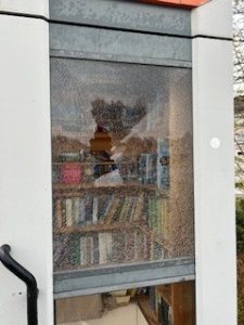 Am vergangenen Wochenende (18./19.04.2026) wurde die Scheibe der Bücherzelle mutwillig eingeschlagen. Leider nehmen Vandalismusschäden im Stadtgebiet aktuell drastisch zu.